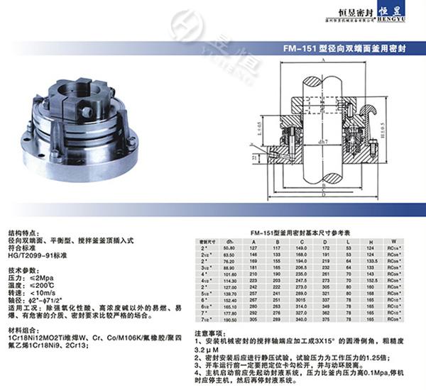 FM-151型徑向雙端麵釜用密封